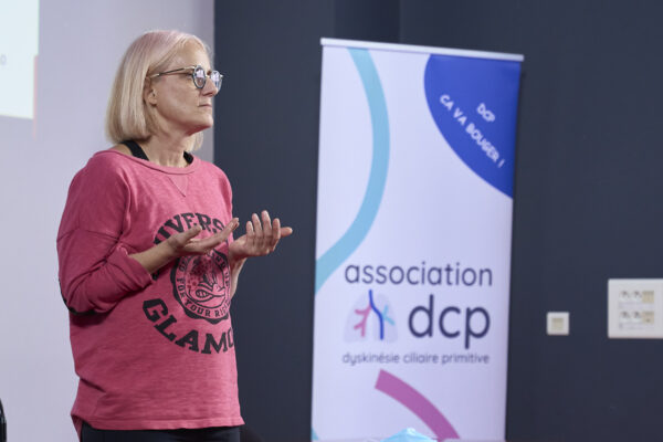 Après une pause déjeuner conviviale, Sophie Jacques, kiné respiratoire est intervenue pour présenter les bienfaits de la kinésithérapie respiratoire pour les patients et la nécessité d’avoir une activité physique pour bien vivre au quotidien notre maladie respiratoire rare.